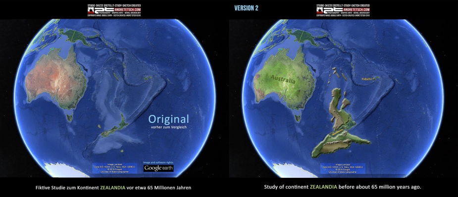 Studien zum Thema "Untergegangene Kontinente" - Hier zur eventuellen Lage des sagenumwobenen "ATLANTIS und dem durch Plattentektonik versunkenen, einstigen Kontinent "ZEALANDIA" um das heutige Neuseeland herum.