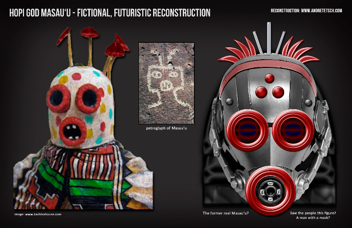 Der merkwürdig aussehende und dargestellte Gott Masau'u der Hopi-Indianer