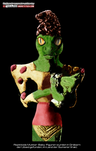 FIKTIVE REKONSTRUKTION EINER ANTIKEN, TYPISCHEN REPTILOID-FIGUR DER OBED- ODER UBAID-KULTUR IM HEUTIGEN IRAK